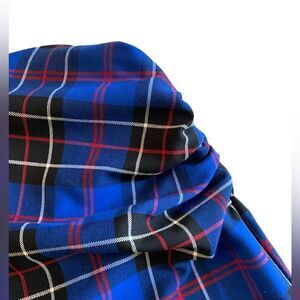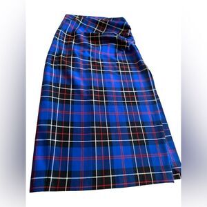 Wow is this skirt gorgeous! Lovely blue plaid with red, black and white highlights. Zipper in back. Looks great with black heels or a pair if black boots. Very figure flattering. Fits a bit small for a 6.