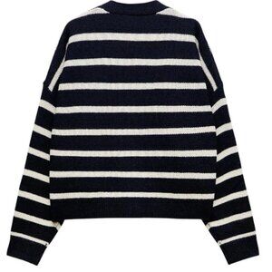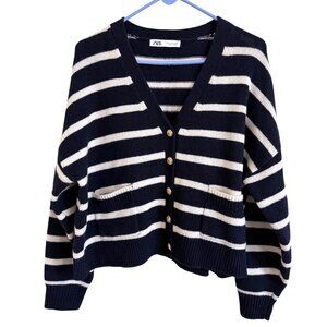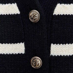 NWOT Zara Navy Striped 100% Wool Knit Cardigan with Nautical Buttons Details