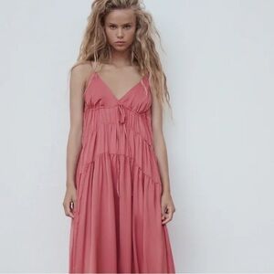 NWOT Zara Pink Tiered Maxi Dress Size XS- S