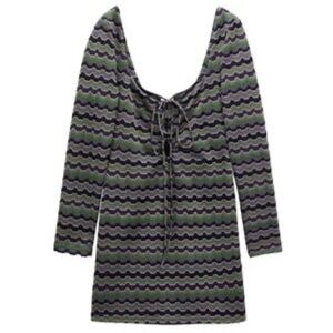 NWOT Zara Sparkle Geo Stripes Zig Zag Pattern Mini Dress S Purple Green