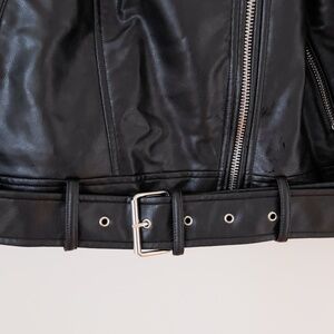 NWOT Zara Vegan Leather Black Moto Jacket Size Large Biker Motorcycle