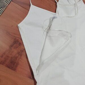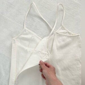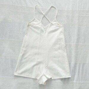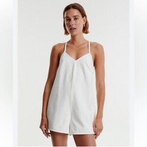 A super cute vintagy denim summer romper by Zara. Side zipper closure. Crisscross straps in the back. Loose slightly slouchy fit from thighs down.