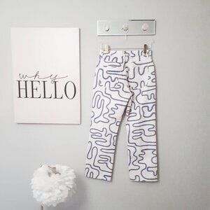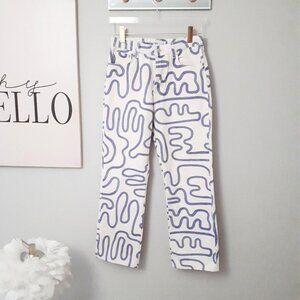 NWOT never worn Zara beige cream and purple swirl graffiti printed straight high waisted ankle jeans, US 6