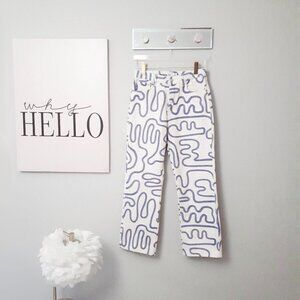 NWOT Zara beige cream & purple swirl graffiti printed straight high waist jeans