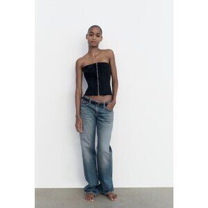 NWOT Zara black denim corset style top, L