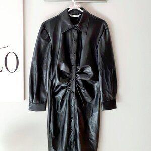 NWOT never worn Zara black faux leather gathered accent waist button-up collared shirt dress