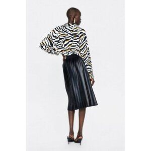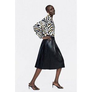 NWOT Zara black faux leather patent pleated A-line midi skirt