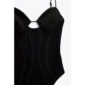 NWOT never worn Zara black matching lace-like accented corsetry-inspired bodysuit, S