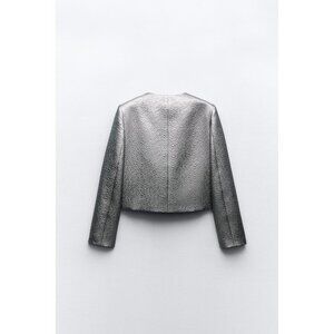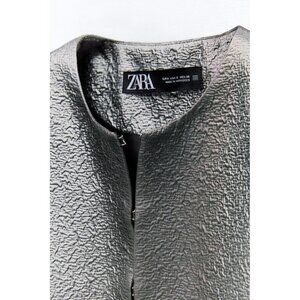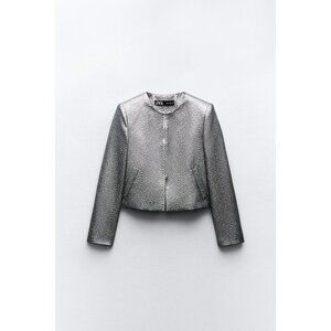NWOT Zara charcoal silver metallic sheen laminated cropped jacket, XS