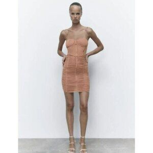 NWOT Zara dusty rose ruched tulle corset mini dress, XS