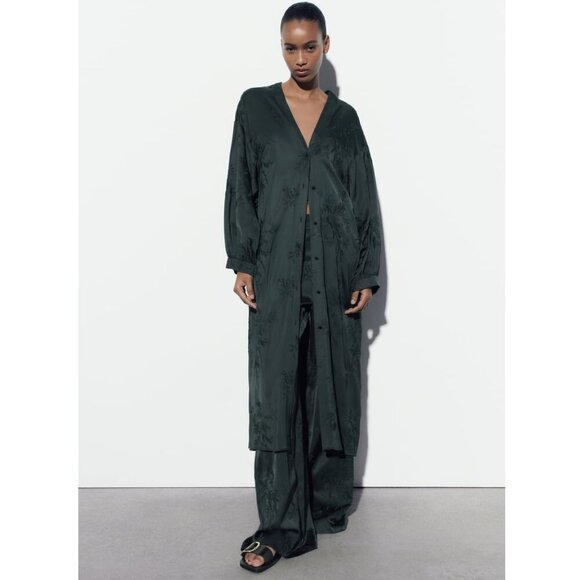 NWOT Zara embroidered satin effect kimono duster