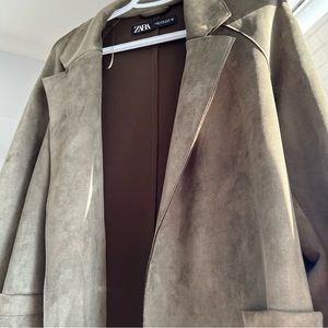 Zara faux suede jacket, green, oversized, soft, extra Small