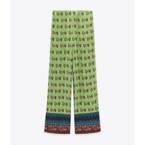 NWOT never worn Zara green & multicolour abstract floral print high waist wide leg full length casual pants, S