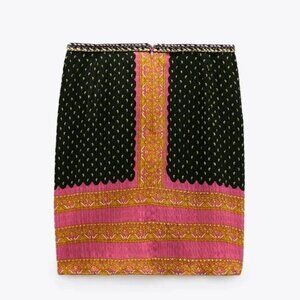 NWOT never worn Zara multicolour dual print boho-inspired mini skirt with trim accent, XS