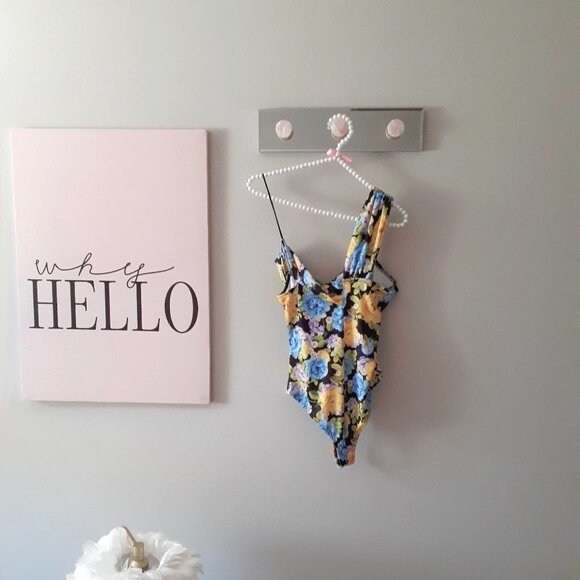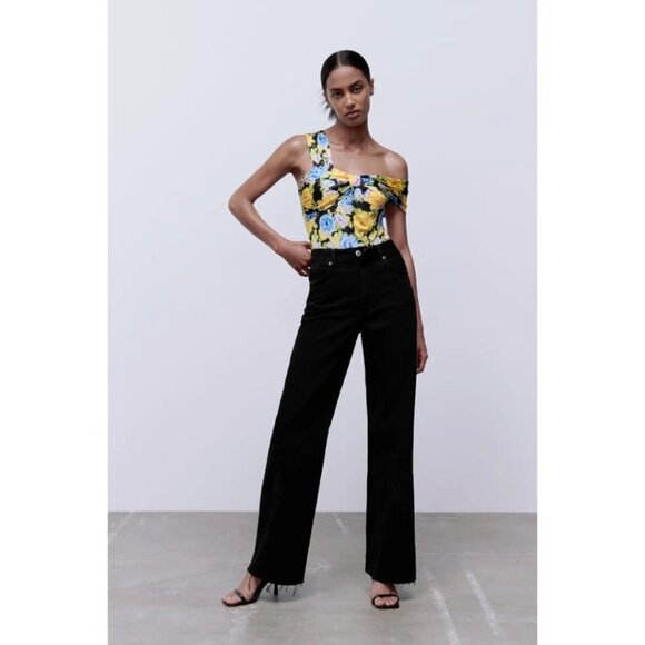 NWOT never worn Zara multicolour floral print asymmetrical wide strap pleated bodysuit
