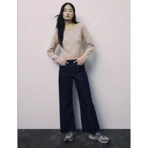 NWOT Zara multicoloured, pastel diamond checkered print wool blend sweater, M
