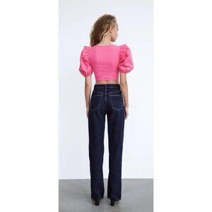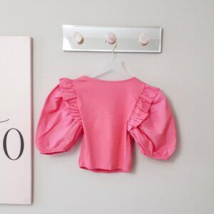 NWOT never worn Zara bright pink cotton ribbed puff balloon ruffle statement sleeve crop top