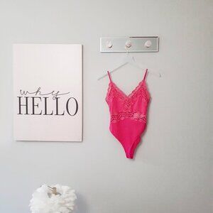 NWOT Zara pink lace trim detail sleeveless bodysuit, M