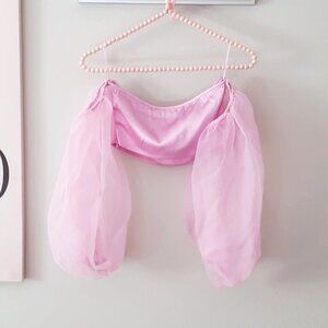 NWOT never worn Zara bubblegum pink contrasting organza balloon sleeve crop top