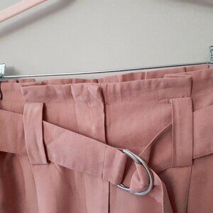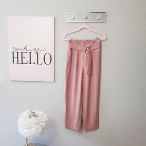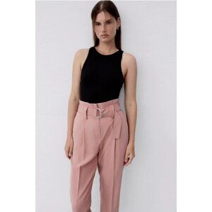 NWOT Zara pink paperbag elastic high waist belted crop trouser pants, S
