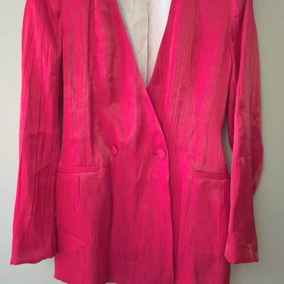 NWOT Zara raspberry pink red double breasted belted blazer
