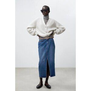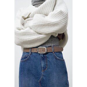 NWOT Zara taupe brown leather belt with silver hardware, 38.25" long