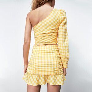 NWOT Zara yellow & white checkered asymmetrical one shoulder cotton crop top, L