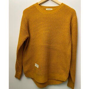 NWOT Zenana Hi- Low Long Sleeve Round Neck Waffle Sweater in Golden Mustard. Warm & Comfy