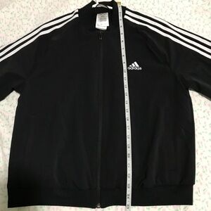 Unisex adidas 3-stripes sweater in black, men’s size large tag. Loose fit, could also fit a women’s extra-large. Pockets do not have zippers.
