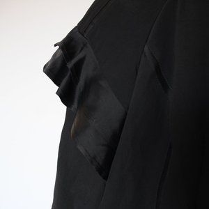 -Little line detailing on the jacket, ruffles with ribbon edging, and a hidden zipper make this jacket look sleek and stylish.
