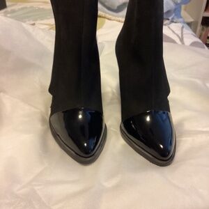 Lack boots with side zip, patent toe and suede feel upper