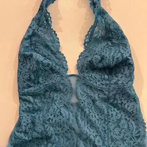Our halter bodysuit is the ultimate layering piece, with a plunging neckline, scalloped lace edges and corded lace cups. The thong back and low plunge cut allows this style to disappear under clothes.