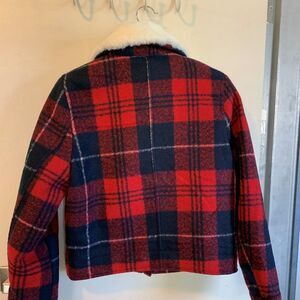 Never worn, Divided, moto inspired red and navy short plaid jacket. Textured like a cozy mohair, faux shearling collar with double buckle detail, 2 front pockets, fully lined... SO cute, so versatile. Sz S, full front zipper closure. Wear with leggings or jeans and combat style boot, go girlie with short skirt and tights. Add some complimenting pieces from Our Closet (some suggestions shown, all listed and priced separately), make a bundle, save a bundle. New posting daily so there's always something Fresh at Lemon Squeezy Shop🍋
