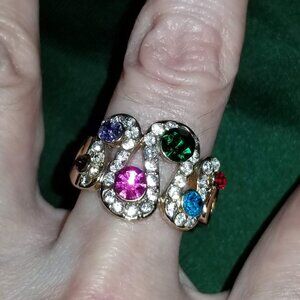 Beautiful ring with coloured crystals set between loops of white crystals