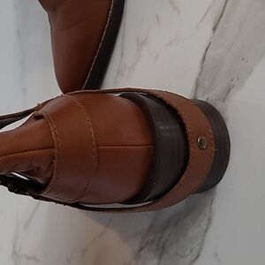 Distressed vintage vibe with a little bit of cowboy. Genuine leather. Some markings on sole from trying on. 2 inch block heel.