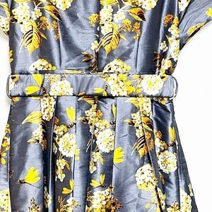 NWOT eShakti Quincy Grey Yellow Dragonfly Floral Mother of the Bride Dress Sz 16 Host Pick