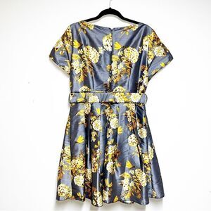 NWOT eShakti Quincy Grey Yellow Dragonfly Floral Mother of the Bride Dress Sz 16
