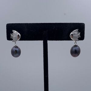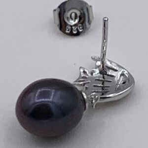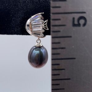 NWOT, earrings, solid 925 sterling silver, real black pearls, clear gem accents