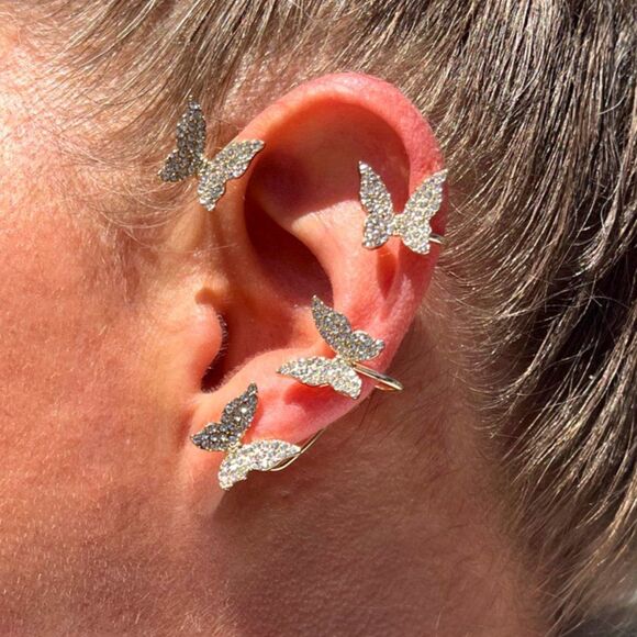 NWOT, gold tones and CZ charming ear cuff with sparkly butterflies,