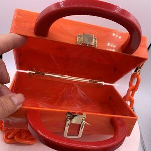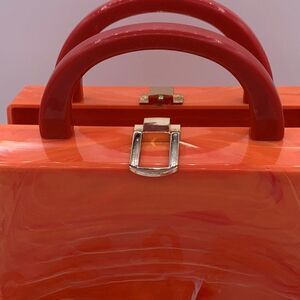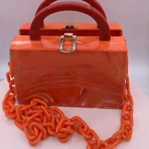 New just in, no tags. Soooo cute! Bright and breezy hard acrylic hand bag/purse with large scale acrylic detachable chain suitable for cross body wear in deep coral red, sized to hold I phone. Also available in bright orange ( orange sold). Nothing precious here, just fun, light and bright summer vibe, everything you want for upcoming sunny summer day and leisure wear; awesome at the beach or pool. Add some completing pieces from Our Closet (some suggestions shown all listed and priced separately), build your own fun summer look. Let's get Fresh at Lemon Squeezy Shop🍋