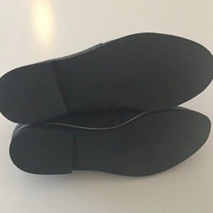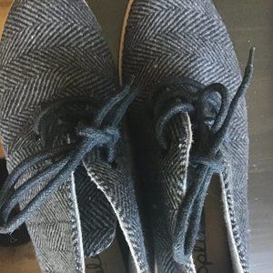 Brand new lightweight low laced boot made of a herringbone / tweed fabric in gray and black. Black rubber sole and very flat heel.