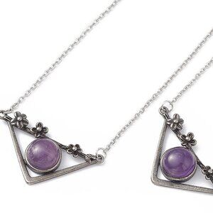 NWOT natural amethyst triangle Flower floral necklace Gemstone pendant