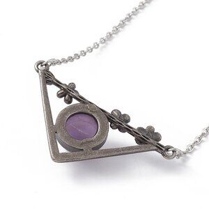Natural Amethyst Triangle with Flower Pendant Necklace, Antique Silver & Platinum Brass Jewelry for Women, Cadmium Free & Lead Free,