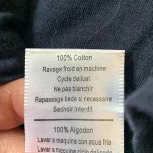 This fitted T-shirt has the logos heat transferred on the front. This is size large, but will fit more like a medium. The T-shirt has lots of stretch.