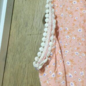 NWOT peach/orange floral knee length dress with pompom trim sleeve area size M