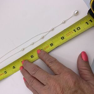 Solid sterling chain with real freshwater pearls. About 10 1/2 inch drop with the around the neck circle being about 16 inches that sits at the throat with the drop laying below that. Delicate, feminine, fresh new take on the classic pearl necklace. If you have an upcoming shower, grad ceremony, prom, wedding, this is the perfect accessory for all your pretty dresses. A natural with your sexiest bikini and cover up. Build a whole new look or just add a few completing pieces from Our Closet (some suggestions shown all listed and priced separately). This is how we get Fresh at Lemon Squeezy Shop🍋