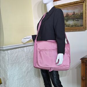 Never used extra large Belkin work/school laptop messenger bag in pretty pink cordura nylon. Adjustable shoulder strap, carry handle, lots of room to carry all your school/work needs including a padded laptop pocket.
