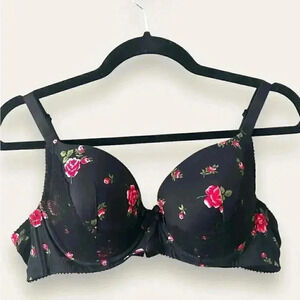 NWOT CASEY PLUNGE MOLDED T-SHIRT BRA - BLACK W/ ROSE PRINT 38C
