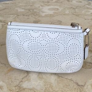 NWOT Coach White Laser Cut Leather Wristlet Wallet C-Monogram