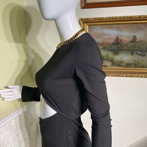 Brand new without tag sexy black Bodycon dress features cutout at waist, high neckline, long sleeves and just above the ankle length.